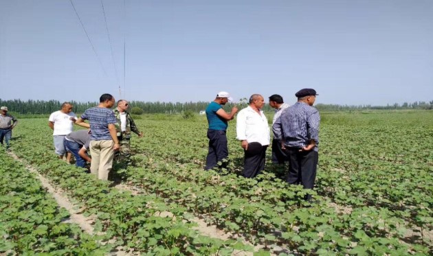 首站在巴楚縣舉辦了棉花施肥、滴水、抗蟲、抗災(zāi)培訓(xùn)活動(dòng)及產(chǎn)品推介會(huì)。隨后趕往喀什地區(qū)巴楚縣附近的夏馬勒鄉(xiāng)和恰瓦克鄉(xiāng)進(jìn)行現(xiàn)場技術(shù)指導(dǎo)和配肥服務(wù)。接著去了毛拉鄉(xiāng)和色利比亞鄉(xiāng),在合作社社長的帶領(lǐng)下,走訪了棉花長勢不好、病蟲害嚴(yán)重的4塊棉田,棉農(nóng)大部分都是維吾爾族農(nóng)民朋友,種地經(jīng)驗(yàn)都比較落后,對(duì)肥料的認(rèn)識(shí)也不足,在用肥過程中偏差很大,交流也有些困難。技術(shù)人員耐心講解,掰開了揉碎了地指導(dǎo)其如何正確施肥。最后在唐巴扎和瓊庫爾恰克繼續(xù)走訪和進(jìn)行技術(shù)服務(wù)指導(dǎo),努力在田間地頭收集訂單,最大程度地推進(jìn)三家的合作進(jìn)程。