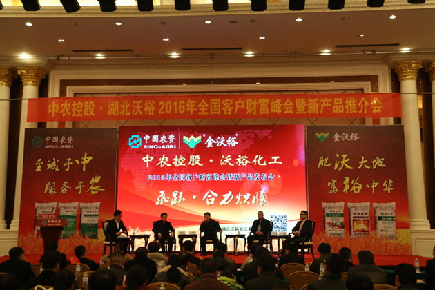 ? ? 12月22日,湖北沃裕化工有限公司(下稱(chēng)湖北沃裕)在湖北省咸寧市召開(kāi)2016經(jīng)銷(xiāo)商財(cái)富峰會(huì)暨新產(chǎn)品發(fā)布會(huì)。湖北沃裕副董事長(zhǎng)余章成、總經(jīng)理劉永強(qiáng)、技術(shù)研發(fā)副總經(jīng)理劉金華、銷(xiāo)售公司總經(jīng)理李略,特邀土壤肥料技術(shù)專(zhuān)家丁德成、謝方淼、張軍利,以及來(lái)自全國(guó)300余名經(jīng)銷(xiāo)商代表參加會(huì)議。