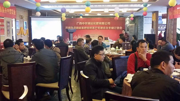 ? ? 近年來,廣西中農調運依托完善的基層網絡,找準市場定位,并借助試驗田、觀摩會、訂貨會、實用農化服務講座等多種營銷方式,不斷擴大合作企業貴州開磷高塔硝硫基復合肥的地方銷量,2015年更是創出新高,實現15000噸的總銷售規模,真正實現了互利共贏。本次答謝及冬儲訂貨會的召開,既是廣西中農調運在與貴州開磷合作的基礎上,實施的“以產品定位和農化服務促進銷售”營銷策劃內容之一,也是2015年企業冬儲訂貨會的全面啟動和具體經營工作的落實。本次冬儲訂貨會共收到來自桂林地區客商的復合肥訂單3000余噸,成績喜人。