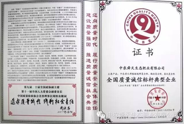 ? ? 據悉,環保生態肥料產品認證是國家認證認可監管委員會在農業化學品實施環保產品認證工作中率先啟動的,是國家認監委在《肥料中砷、鎘、鉛、鉻、汞生態指標》國家標準發布實施后,為促進農產品質量安全和環保生態農業而采取的重要舉措。此次順利通過環保生態肥料的認證,標志著中農舜天環保生態肥管理體系得到權威單位的認可和肯定。