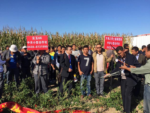 ? ? 據了解,吉林省通榆縣,地處松遼平原西部,古稱“八百里瀚海”。通榆縣地廣人稀,盛產雜糧、雜豆。針對通榆縣土地瘠薄、鹽堿重、沙化嚴重的實際情況,“中國農資”小型合作社通榆中心社提倡增施土壤調理劑,合理使用無機肥。在作物生長期,“中國農資”小型合作社通榆中心社下派服務專員,到田間地頭,幫助社員解決播種、除草、中耕遇到的問題,傳授病蟲害的防治技術,了解社員需求,得到了基層社員的一致好評。目前,“中國農資”小型合作社通榆中心社成立了120多個基層社;社員多達4500人,服務耕地面積6000公頃。