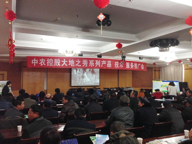 ? ? ? ?2014年下半年,公司在寧夏吳忠、青銅峽、靈武、紅寺堡、鹽池、中衛(wèi)、固原等地舉辦了一系列“大地之秀”產(chǎn)品示范推廣活動,取得了非常好的效果。為鞏固推廣基礎(chǔ),擴大示范影響,讓更多的地方經(jīng)銷商和廣大農(nóng)戶認(rèn)識和使用“大地之秀”產(chǎn)品,2015年初,公司再次深入寧夏,聯(lián)合中寧、鹽池、青銅峽等地合作方,舉辦了首場以“技術(shù)+服務(wù)”為特色的產(chǎn)品推介會。
