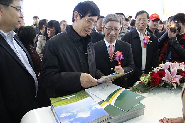 ? ? 展會開幕式結束后,中華全國供銷合作總社理事會副主任、中國農資流通協會會長、中國供銷集團董事長顧國新,中農集團董事長、黨委書記楊建平在中農控股副總經理朱聯的陪同下參觀了中農控股展位。