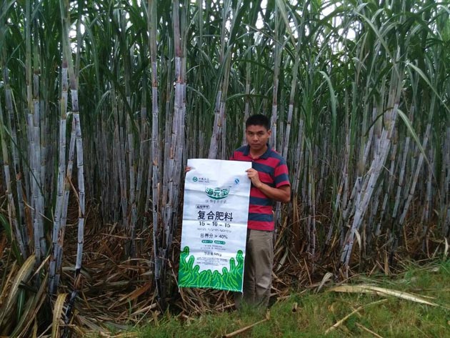 ? ? 今年4月培土時,當地蔗農示范戶陳明綠按照公司農技人員給出的種植方案,在自家每畝甘蔗地里施了75公斤“海元寶”海藻肥(15-10-15)。從4月初到9月上旬的整個生長期,陳明綠沒再給甘蔗追過肥,但卻發現甘蔗長勢迅速,節桿長而粗壯,葉子濃綠,每兜分裂有4-6根,與對比試驗中施用其他進口肥料的甘蔗相比,每兜分裂數量多出幾乎一倍,產量也有大幅度提升。根據目測,陳明綠的甘蔗地預計畝產將超過12噸。