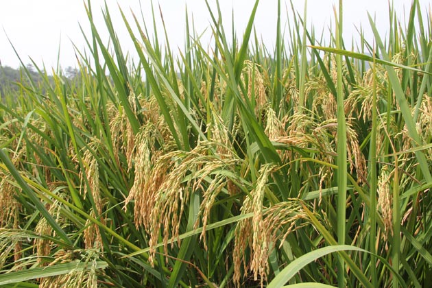 ? ? 在觀摩會上,湖南隆科農化人員現場講解了“金沃裕”復合肥的生產工藝及水稻高產技術,特別是針對產品在保水保肥、環保高效、增強地力等方面的突出效果作了細致說明。觀摩現場,湘潭縣茶恩寺鎮的種植大戶譚湘科對大家說:“今年使用‘金皇冠’復合肥后,水稻根深、稈粗、分蘗多,顆粒飽滿,每畝產量達到750公斤,我不僅自己用,而且也推薦我的鄉里鄉親用,希望大家都來試試這款好肥料”。通過試驗田對比,現場人員實地看到“金皇冠”復合肥的增產效果。