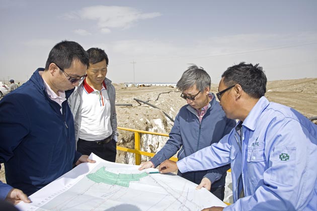 ? ? 考察期間,楊建平先后實地查看了興元公司45萬噸鉀肥裝置,鹽田灌鹵、采鹵和曬礦生產現場,并驅車150多公里,對項目阿拉爾水源地、104公里輸水線、落差1000米的四座水泵站和35KV輸變電線路進行了巡視考察。在巡視過程中,楊建平還看望了一線工作人員,對他們在戈壁艱苦工作環境中表現出的奉獻精神表示敬意,對他們為興元公司的建設所做出的貢獻表示感謝。