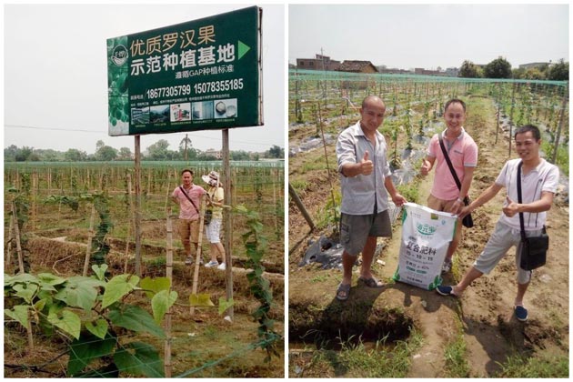? ? 秦永德介紹,千燁公司經過7年的創新與發展,現在已經是一家專業從事農產品種植、收購、加工、包裝及銷售的企業集團,擁有上千畝優質羅漢果示范種植基地,發展農戶種植1.2萬畝,是桂林當地最大的農產品生產商之一。今年春節季,為能讓當地農民種出高品質的羅漢果,千燁公司專門邀請中農控股的農化服務人員到田間地頭對農戶進行一對一的生產技術指導,針對羅漢果的種植告訴農戶如何施肥,如何做好病蟲害防治,在給出綜合解決方案后,進行了全程的跟蹤服務。從4月上旬到6月上旬,渡頭村羅漢果基地普遍施用中農控股的“海元寶”海藻肥套餐,底肥用“海元寶”(15-10-15)加“海元寶”中量元素有機肥,確保持久均衡地為植物提供營養。 秦永德表示,雖然今年桂林雨水特別大,但從試驗效果看,施用“海元寶”海藻肥的羅漢果不徒長、無缺素現象,受到當地用戶的廣泛認可,同時大家也希望能夠得到中農控股更多的農化服務支持,為他們的羅漢果生產提供充足的高效海藻肥供應。