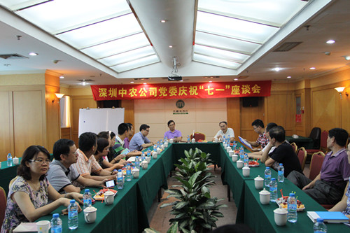 ? ? ? 7月1日,深圳市中農(nóng)生產(chǎn)資料有限公司(簡(jiǎn)稱“深圳中農(nóng)”)黨委在深圳中農(nóng)大廈舉行座談會(huì),紀(jì)念中國(guó)共產(chǎn)黨誕辰92周年。來自深圳中農(nóng)本部、各控股公司支部的黨員30余人參加座談。座談會(huì)由深圳中農(nóng)黨委委員、黨辦主任馬立鶴主持。?????座談會(huì)上,深圳中農(nóng)董事長(zhǎng)兼總經(jīng)理肖建國(guó)與大家共同回顧了深圳中農(nóng)從黨支部組建、擴(kuò)大到黨總支成立20年來的發(fā)展歷程。在談到公司黨建工作時(shí),肖建國(guó)說,目前深圳中農(nóng)面臨著內(nèi)外部的挑戰(zhàn)和改革發(fā)展的壓力,黨組織的政治優(yōu)勢(shì)要向競(jìng)爭(zhēng)優(yōu)勢(shì)和發(fā)展優(yōu)勢(shì)的方向轉(zhuǎn)化,不管公司管理模式發(fā)生何種變化,作為一名共產(chǎn)黨員,都應(yīng)該保持堅(jiān)定的政治信念,堅(jiān)持黨性原則,保持共產(chǎn)黨員先進(jìn)性,在日常生活中以黨員的標(biāo)準(zhǔn)嚴(yán)格要求自己。?????隨后,公司黨委、紀(jì)委成員和各支部黨員代表暢所欲言、各抒己見,分別結(jié)合各自的入黨經(jīng)歷、學(xué)習(xí)、工作和生活實(shí)踐,暢談了在黨建工作中的經(jīng)驗(yàn)和體會(huì),抒發(fā)了立足本職崗位,發(fā)揮共產(chǎn)黨員先鋒模范作用的感想,并結(jié)合業(yè)務(wù)發(fā)展提出了諸多積極建議。來自駐深農(nóng)資企業(yè)的退休黨員陳永蓮在發(fā)言中對(duì)深圳中農(nóng)黨委給予的關(guān)懷表示感謝,黨委開展的有聲有色的黨建活動(dòng)讓他們充分體會(huì)到了黨組織的歸屬感和榮譽(yù)感。????最后,肖建國(guó)希望各黨支部要充分發(fā)揮組織領(lǐng)導(dǎo)作用,各黨員更要以身作則,在公司轉(zhuǎn)型之際,同舟共濟(jì)、齊心協(xié)力,發(fā)揮戰(zhàn)斗堡壘和模范作用,將每個(gè)黨員、每個(gè)員工的夢(mèng)匯聚成深圳中農(nóng)的夢(mèng),更好地推動(dòng)深圳中農(nóng)不斷發(fā)展。