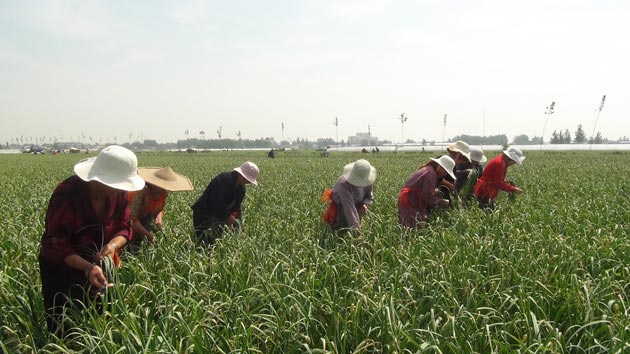 ? ? 蒼山縣是我國有名的大蒜之鄉(xiāng)。當(dāng)下,正是蒜苔采收的季節(jié),只見示范田里生長的蒜苔顏色濃綠、高大粗壯。當(dāng)?shù)剞r(nóng)民韓敬茂高興說:“我的苔子(蒜苔)長得就是比別家的強(qiáng),色綠、粗長、沒有黃斑,往年用其他肥料一畝能產(chǎn)一千二三百斤,今年開始用五洲豐藍(lán)色海洋經(jīng)典肥料,比往年能多出三四百斤。”