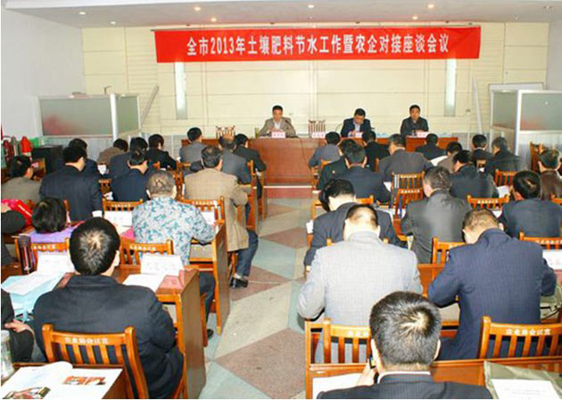 ? ? ? ?4月11日,2013年臨沂市土壤肥料節水工作暨農企對接座談會議在臨沂市召開。中農舜天生態肥業有限公司(簡稱“中農舜天”)應邀參加會議。