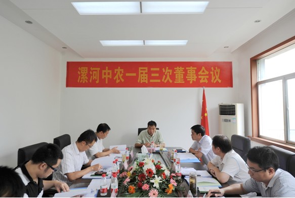 ? ? ?9月12日,漯河中農(nóng)物流有限公司(以下簡稱“漯河中農(nóng)”)第一屆董事會第三次會議在漯河召開,公司全體董事和監(jiān)事出席會議,全體高管成員列席會議,會議由公司董事長韓紹忠主持。