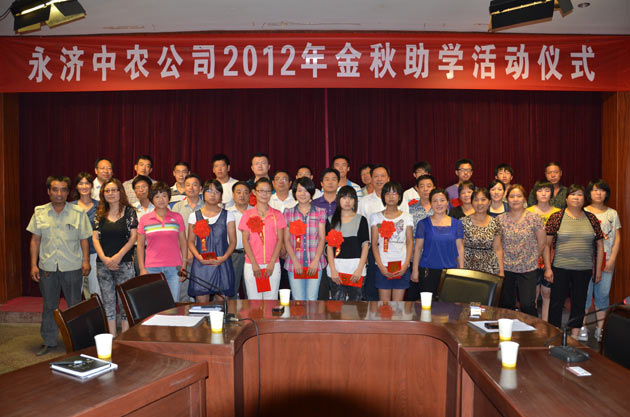 ??永濟(jì)中農(nóng)化工有限公司(以下簡(jiǎn)稱“永濟(jì)中農(nóng)”)“2012年金秋助學(xué)活動(dòng)儀式”日前在永濟(jì)中農(nóng)本部舉行。永濟(jì)市教育局長(zhǎng)衛(wèi)百祥、永濟(jì)中學(xué)校長(zhǎng)高躍利、永濟(jì)中農(nóng)總經(jīng)理劉乃倉(cāng)出席儀式。??? 活動(dòng)儀式上,劉乃倉(cāng)就永濟(jì)中農(nóng)連續(xù)八年的“扶貧救困、愛心助學(xué)”活動(dòng)進(jìn)行了總結(jié)和介紹,他表示,助學(xué)活動(dòng)是永濟(jì)中農(nóng)一項(xiàng)優(yōu)良傳統(tǒng),不僅僅表達(dá)了我們對(duì)知識(shí)的尊重、對(duì)人才的培養(yǎng),對(duì)下一代的關(guān)愛,更是我們企業(yè)文化內(nèi)涵和外延的一種體現(xiàn),公司一定要大力弘揚(yáng)、積極傳承,并通過類似方式,多種渠道為職工、企業(yè)和社會(huì)辦好事、辦實(shí)事,從而在共享企業(yè)發(fā)展成果的同時(shí),構(gòu)建關(guān)愛和諧、積極向上的企業(yè)文化。劉乃倉(cāng)希望受助學(xué)子們,真心感恩、克服困難,努力學(xué)習(xí)、回報(bào)社會(huì),不辜負(fù)家庭、社會(huì)對(duì)他們的培養(yǎng)與厚望,并將助學(xué)愛心永遠(yuǎn)延續(xù)下去。??? 助學(xué)儀式上,衛(wèi)百祥、高躍利、劉乃倉(cāng)作為代表分別向17名即將進(jìn)入高校的受助學(xué)生發(fā)放了3萬(wàn)余元助學(xué)金,并與大家進(jìn)行了面對(duì)面的座談與交流。??? 據(jù)介紹,永濟(jì)中農(nóng)自成立之初就十分重視企業(yè)社會(huì)責(zé)任和企業(yè)文化建設(shè),助學(xué)活動(dòng)是永濟(jì)中農(nóng)將兩者結(jié)合的諸多社會(huì)實(shí)踐活動(dòng)之一,在連續(xù)八年的時(shí)間里,永濟(jì)中農(nóng)共資助學(xué)生56人,資助金額11.2萬(wàn)元,努力做到為社會(huì)奉獻(xiàn)關(guān)愛,為員工送去溫暖。