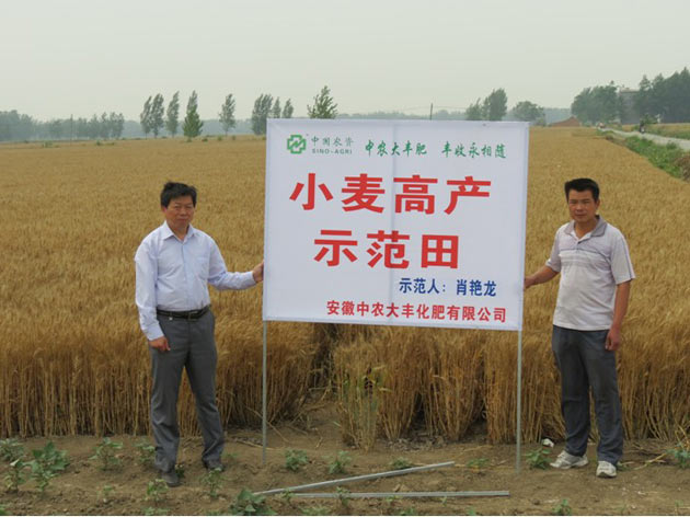 ? ? 近日,安徽中農大豐化肥有限公司(以下簡稱“中農大豐”)在安徽省建設的50塊小麥示范田喜獲豐收,中農大豐高濃度復合肥的施用效果極為明顯,小麥畝產增幅高達18.6 %,這再次證實了中農大豐高濃度復合肥穩定、可靠的產品質量,同時讓廣大經銷商和農民朋友真正看到產品的實效,從而為該肥料的規?;a和全面推廣提供了可靠依據。