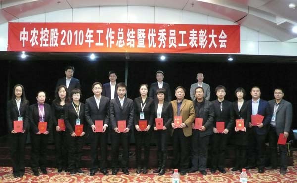 ??? 1月7日上午,中農控股2010年工作總結暨優(yōu)秀員工表彰大會在東四樓會議室召開,中農集團公司副總裁王春林、公司總經(jīng)理羅德強、副總經(jīng)理王全、副總經(jīng)理朱聯(lián),控股企業(yè)代表及本埠全體員工140余人參加會議,會議由王全副總經(jīng)理主持。??? 會議中,羅德強總經(jīng)理對中農控股2010年度工作做了總結報告,他將2010年形容為戰(zhàn)斗的一年,將經(jīng)營工作比作正面戰(zhàn)場,將公司治理和管理工作比作背后的戰(zhàn)場,將投資工作比作新戰(zhàn)場,對中農控股全年的工作進行了全面總結和分析。同時,羅總代表公司領導向廣大員工一年來辛勤工作表示感謝,對公司本部經(jīng)營部門、管理部門及各控股企業(yè)取得的工作成績給予了肯定,也指出了工作中存在的問題和不足。最后羅總以“四大意識”“兩個加強”為主題對控股公司2011年的工作提出要求。??? 另外,王全副總經(jīng)理在會上宣讀了《2010年中農控股優(yōu)秀員工表彰名單》和《成長征文獲獎名單》。會議評選出2010年度優(yōu)秀員工16人,公司領導為獲得表彰的同志頒發(fā)了榮譽證書,海外事業(yè)部陳偉代表優(yōu)秀員工做了獲獎發(fā)言。