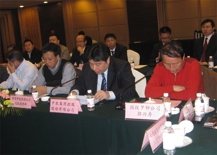 ??? 2010年11月30日,中農控股副總經理朱聯、鉀肥及工業原料部經理王蓓參加國投新疆羅布泊鉀鹽有限責任公司在青島召開的全國硫酸鉀客戶懇談會議。會議期間,雙方對2010年的合作進行了回顧總結,并對2011年的全國市場需求進行了分析展望,最后,國投新疆羅鉀公司對2011年的硫酸鉀意向供應情況進行了初步分配。??? 國投新疆羅布泊鉀鹽有限責任公司成立于2000年9月,以在羅布泊開發天然鹵水資源制取硫酸鉀為主業。年產能130萬噸。我公司是國投新疆羅鉀公司全國最大的區域經銷商,代理銷售其生產的羅布泊牌硫酸鉀,該產品用天然原料加工而成,各項指標達到和超過國家優等品標準,且產品不含游離酸,是目前世界上不可多得的無氯優質鉀肥。具有生態、綠色、純天然、高肥效的品質,上市以來廣受贊譽,是煙草、柑橘、茶葉及其它高檔水果的首選鉀肥品種。